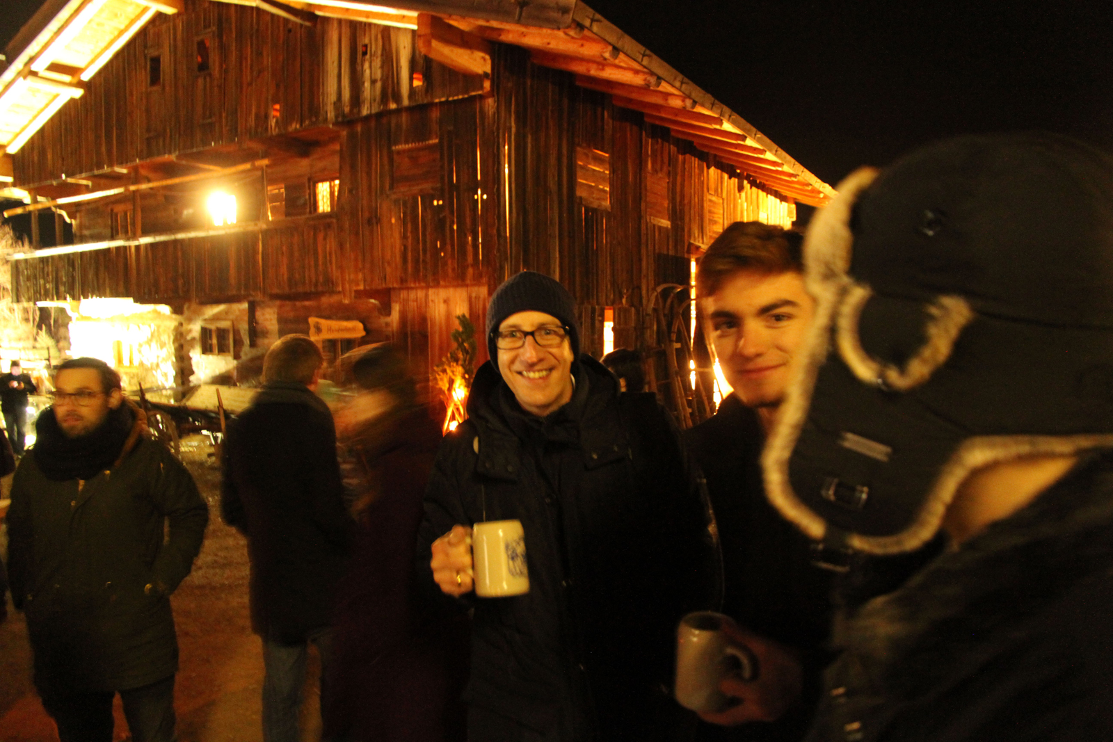 Weihnachtsmarktl" stattfand. Das Freilichtmuseum besteht aus zahlreichen alten Bauernhäusern und Höfen aus verschiedenen Regionen der Alpen, die am Schliersee wieder aufgebaut und der Öffentlichkeit zugänglich gemacht wurden. Nach einem Rundgang durch das festlich beleuchtete Dorf und nach dem einen oder anderen Glühwein ging es zum gemeinsamen Abendessen in Wasmeier's Weihnachtswirtshaus. Der erste Stock des Weihnachtswirtshaus war dazu liebevoll geschmückt und festlich dekoriert. Da wir uns beim Stockschießen ordentlich verausgabt hatten, genossen wir das hervorragende Dreigänge-Menü besonders. Zu später Stunde und mit ausgelassener Stimmung ging es dann im Bus zurück nach München.